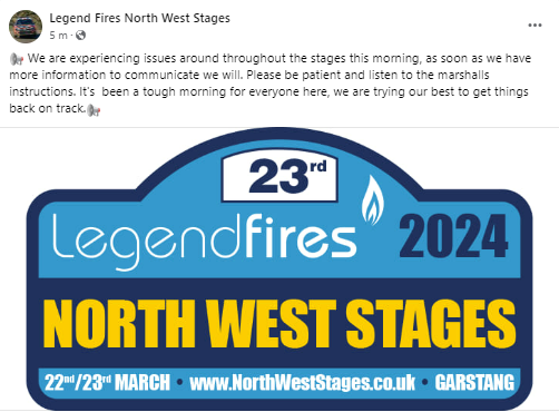 An update from the North West Stages organisers: