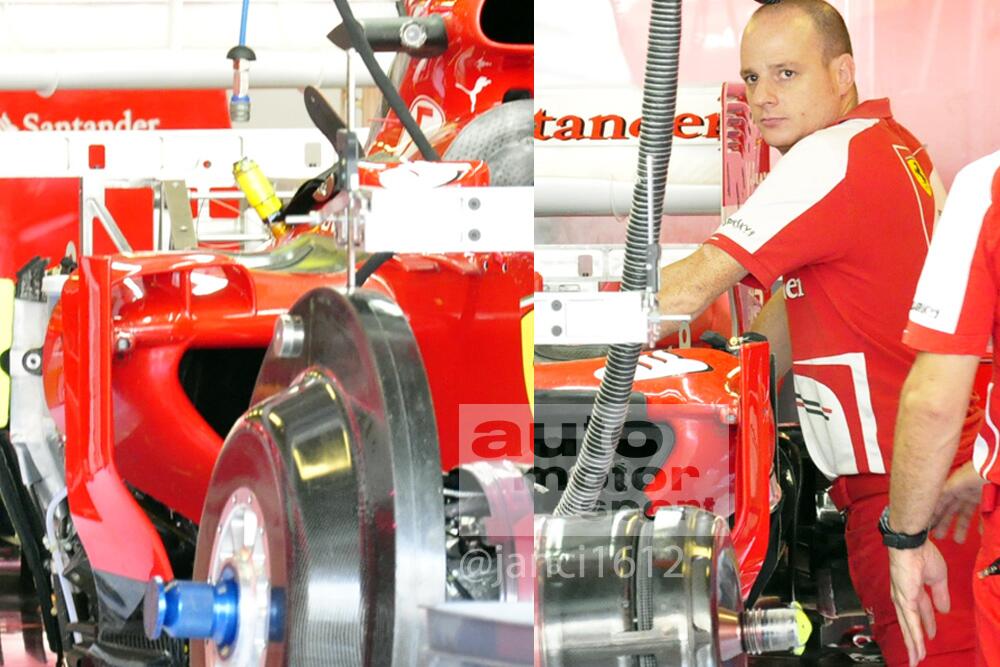 I see The Scuderia is still beating a dead horse. Here is a pic from Abu Dhabi of the new flow conditioners on the side pods Fred’s car.