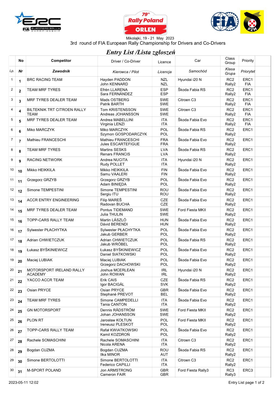 The 79th edition of Rally Poland will be held as round three of European Rally Championship. It will be held from 19 - 21 May and is the first of three rounds on gravel. 16 special stages will decide who will be the winner. The participants of the oldest event in the ERC calendar will compete on stages known from previous editions of the rally, as well as on roads which have never been used before.
